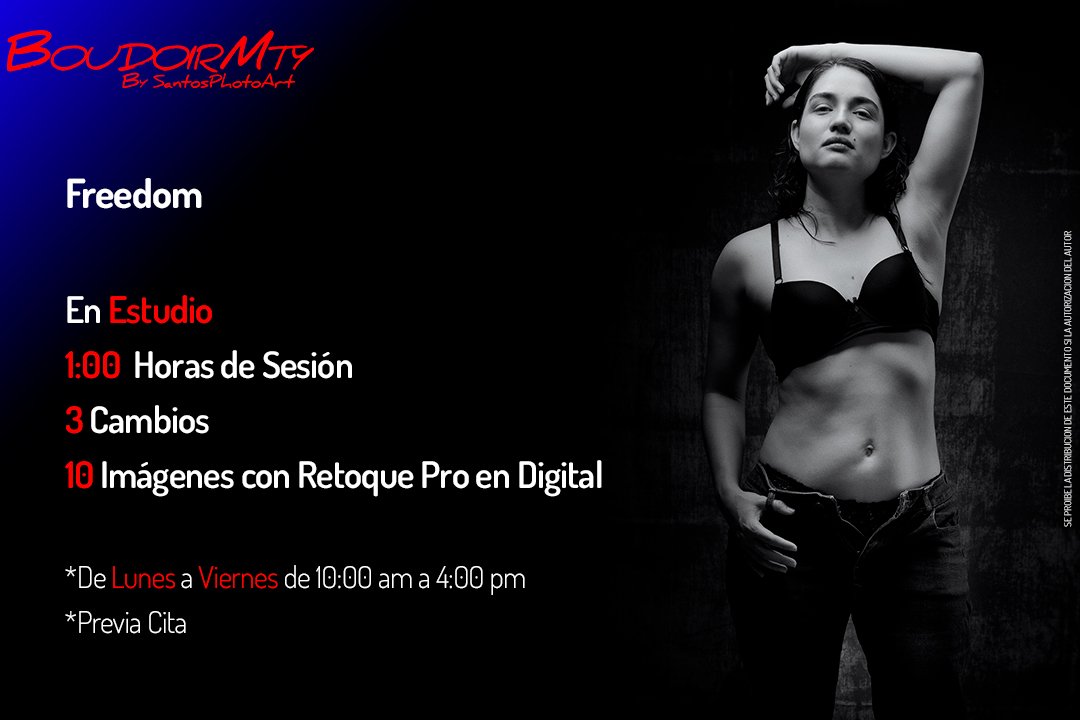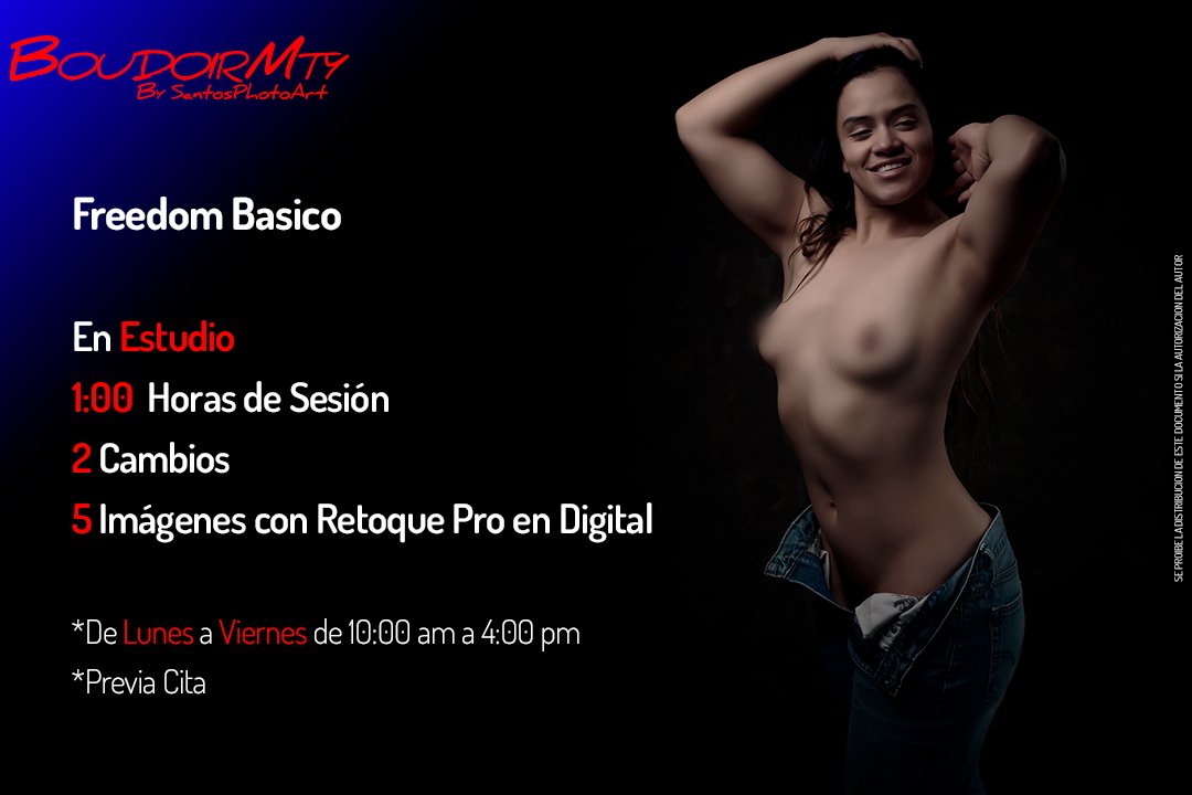 Estoy manejando 4 paquetes de Boudoir que incluye departamento como locación para la sesión y paquetes Freedom y Desnudo Fine Art en estudio