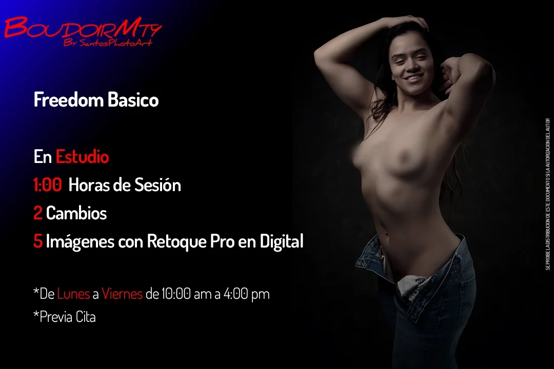Estoy manejando 4 paquetes de Boudoir que incluye departamento como locación para la sesión y paquetes Freedom y Desnudo Fine Art en estudio
